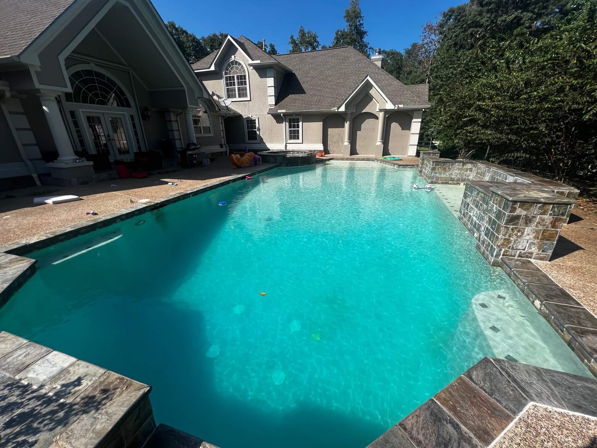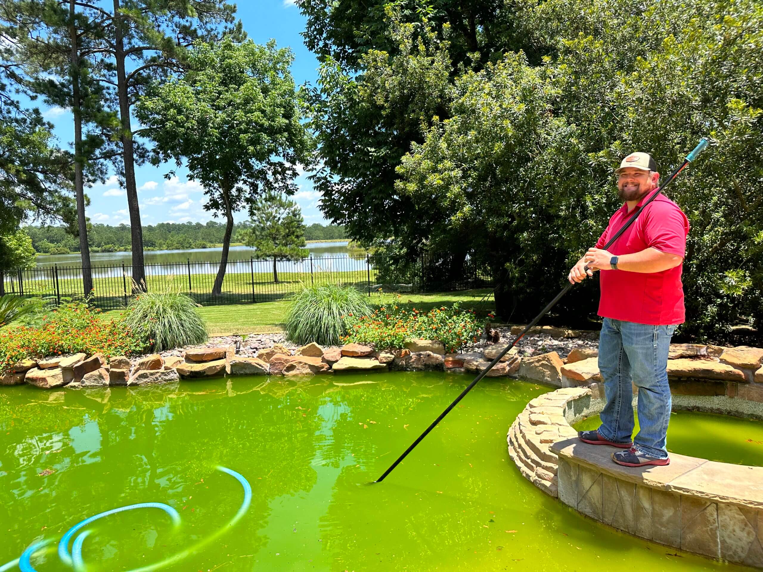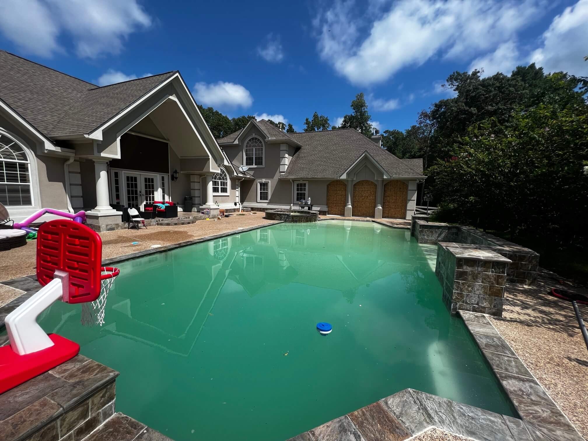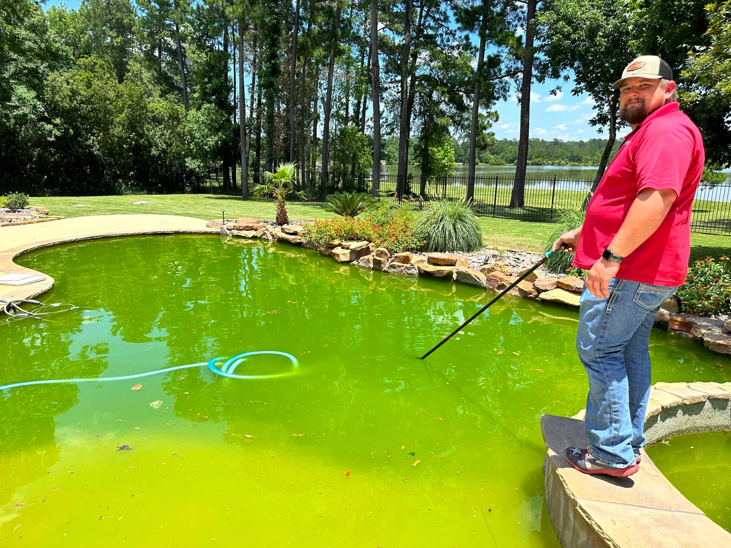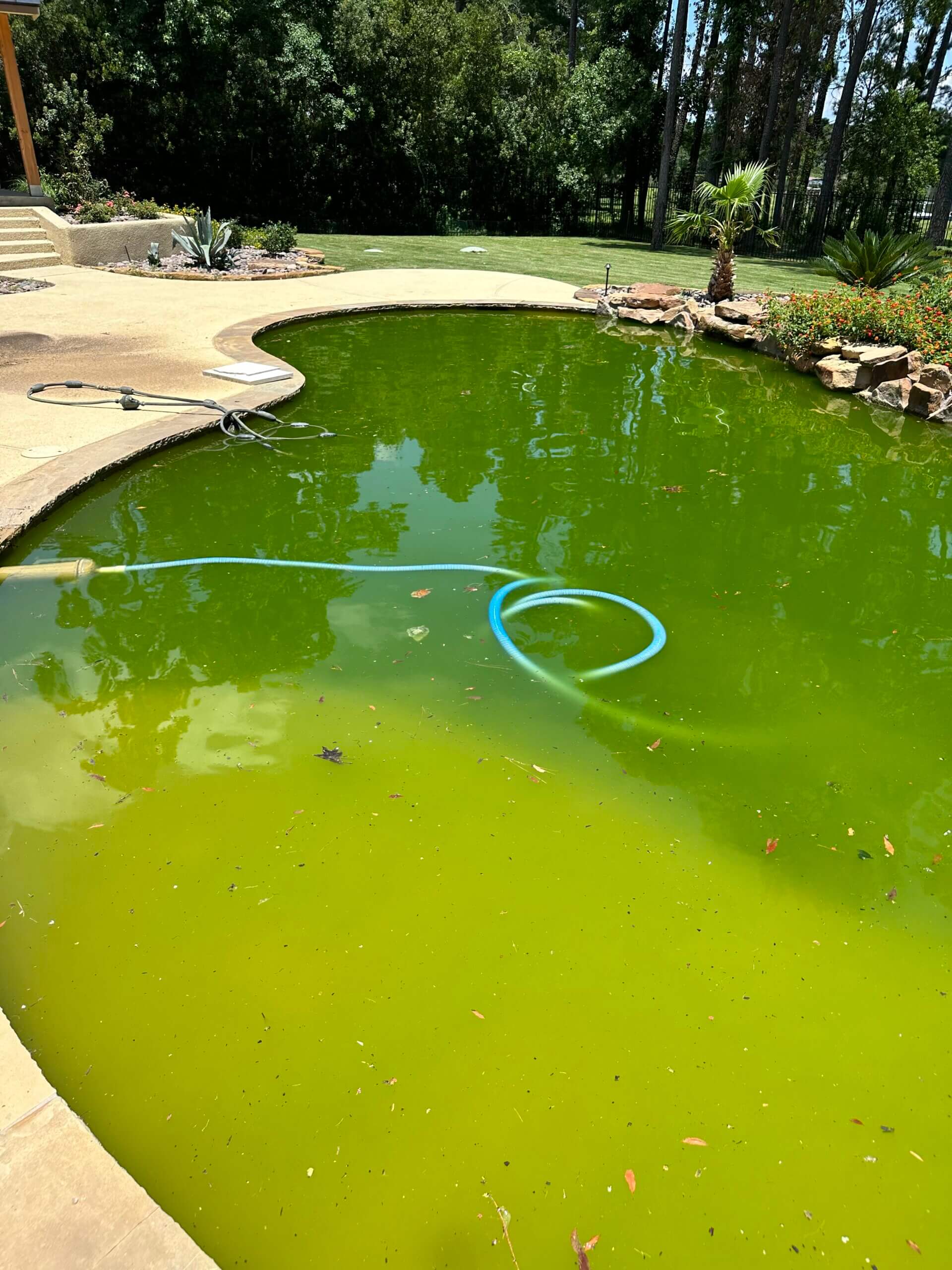 Pool Cleaning is needed when your pool has turned green. This can result from power outages, storms, pool equipment failing and hurricanes. Montgomery Pool Services can turn you pool from green to pristine. Our gallery illustrates some of the pools we have turned from green to sparkling clean in Montgomery, TX and the surrounding areas of Bentwater, Conroe, Spring and Magnolia, TX. Contact us today or call us at 936-463-8855 to get a quote for a pool cleaning