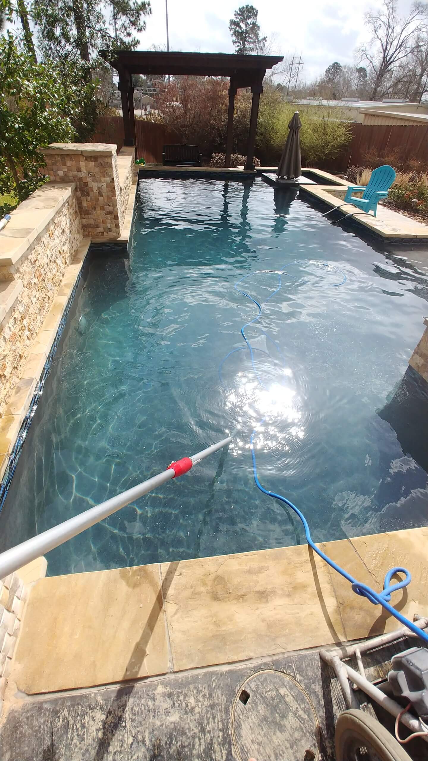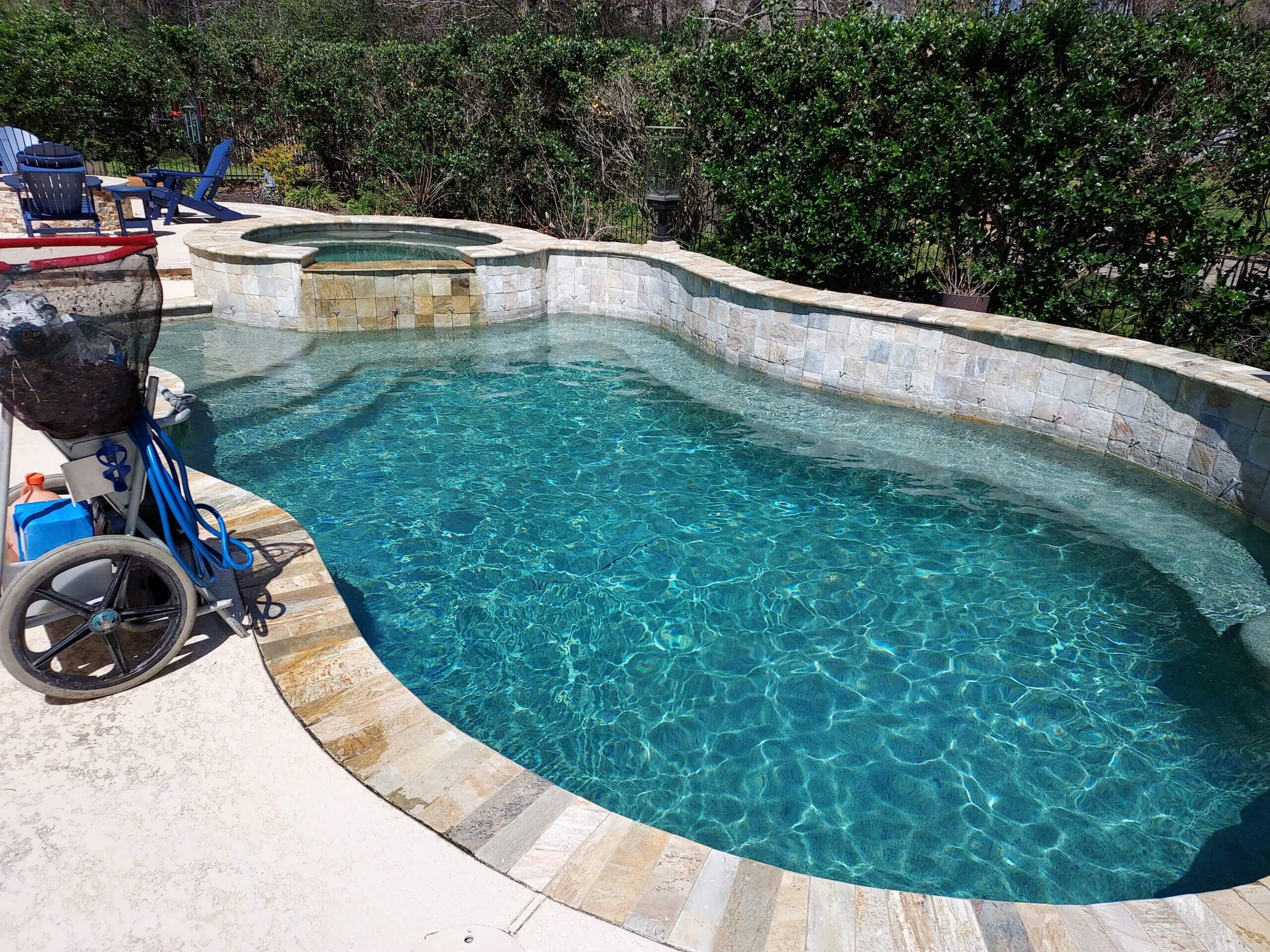 Our pool maintenance gallery shows pools that we maintain on a weekly basis in Montgomery, TX and the surrounding areas of Magnolia, Bentwater, Conroe and Spring, TX. Montgomery Pool Services assures that your chemicals are balanced, your pool equipment is functioning properly, and you pool is sparkling clean. If you are looking for maintenance of your pool contact us today.